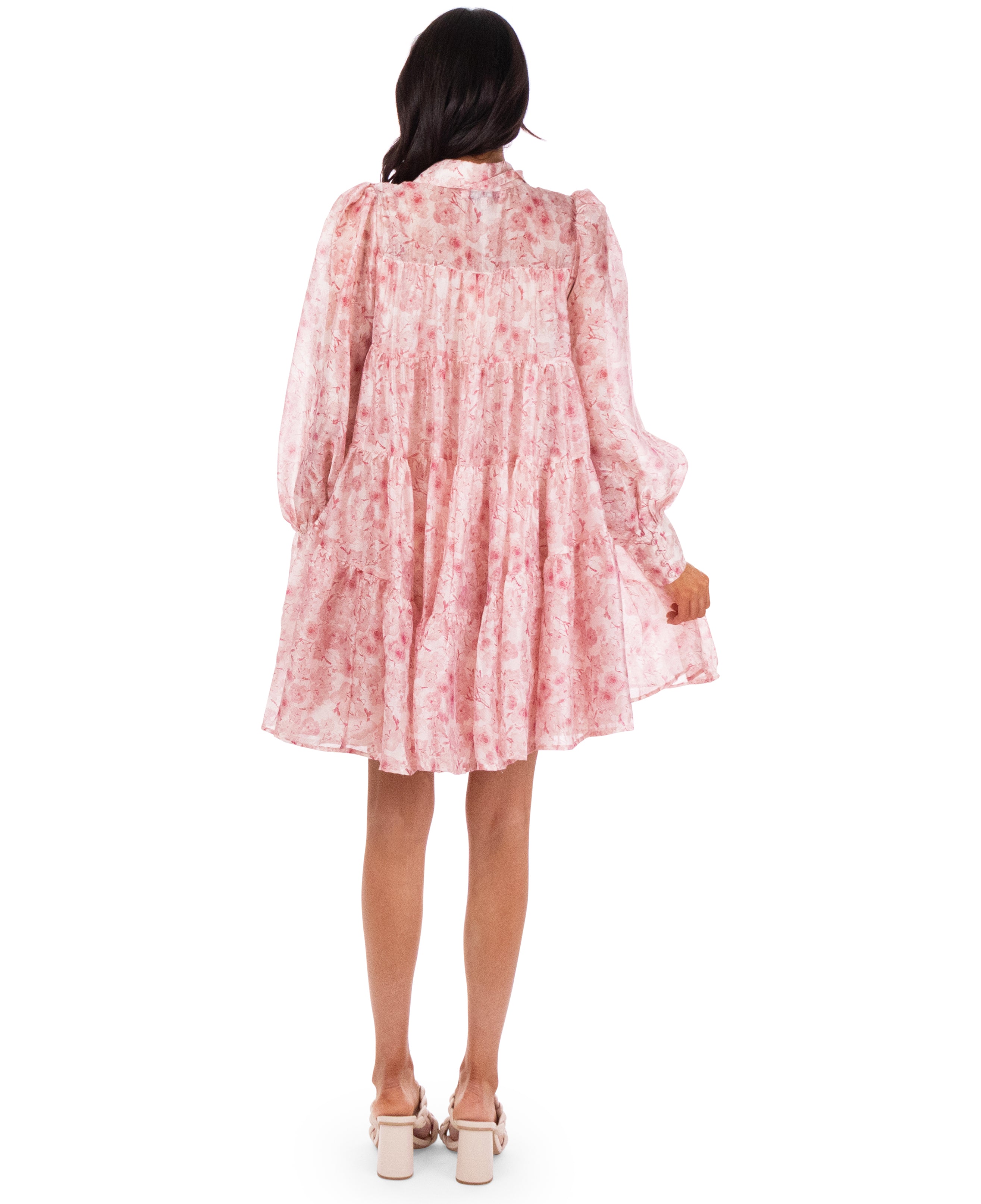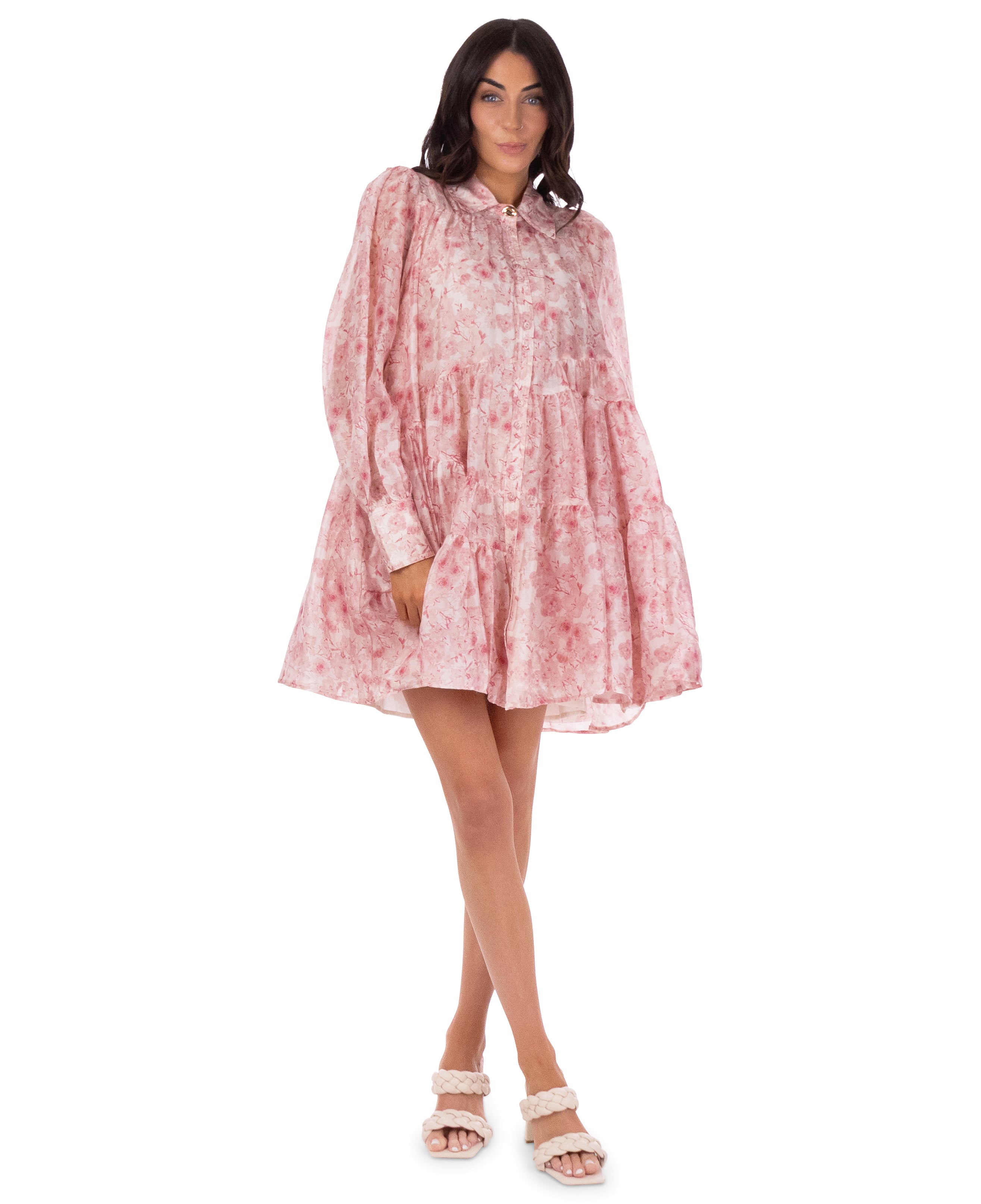 Floral printed tiered mini shirt dress