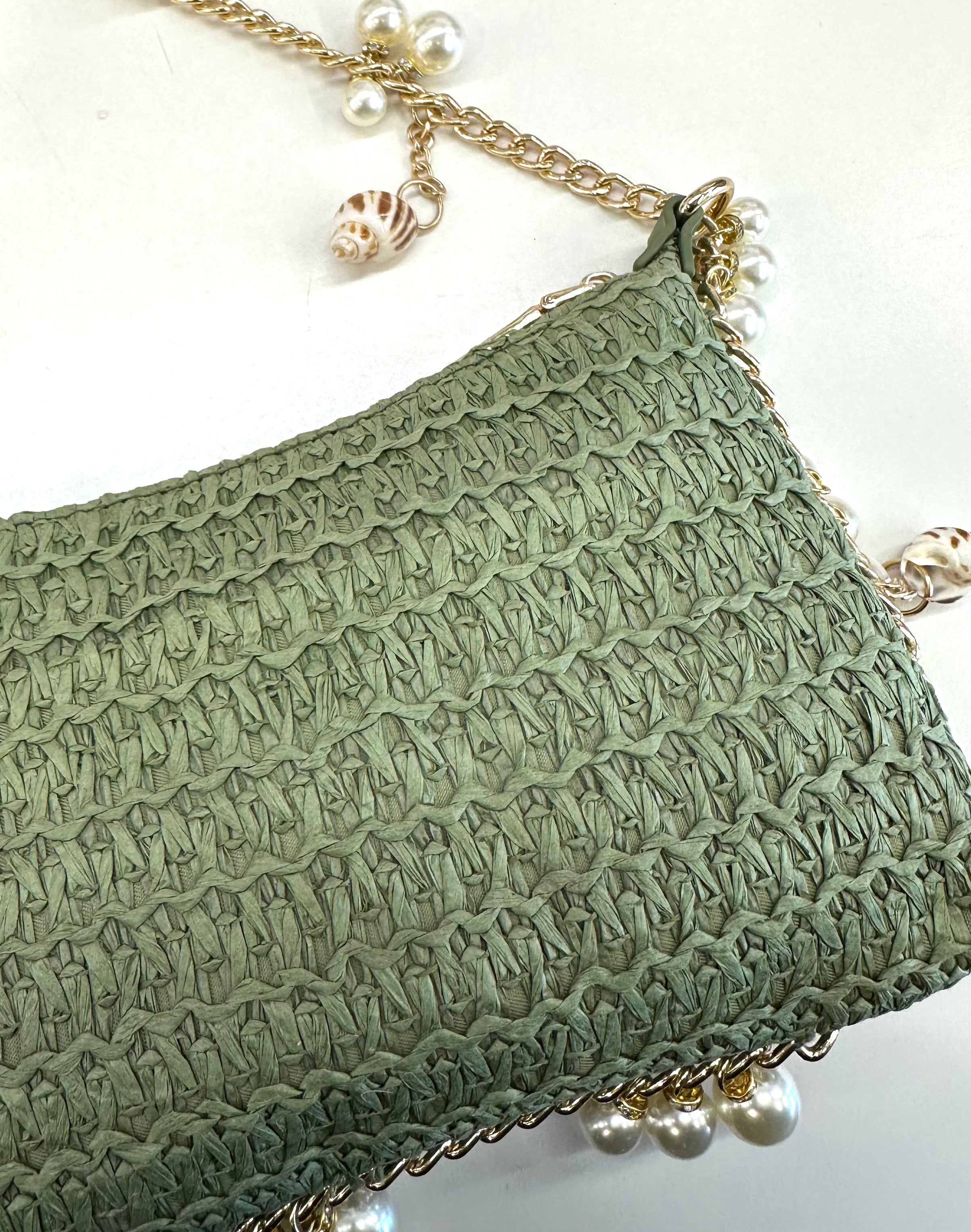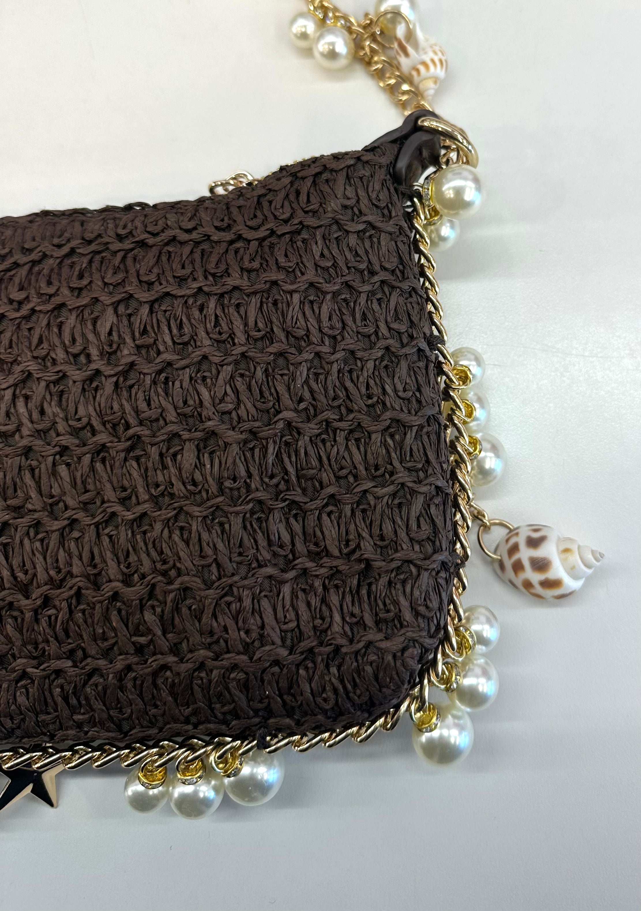 Gold chain strap embellished with seashell, pearl, and starfish charms