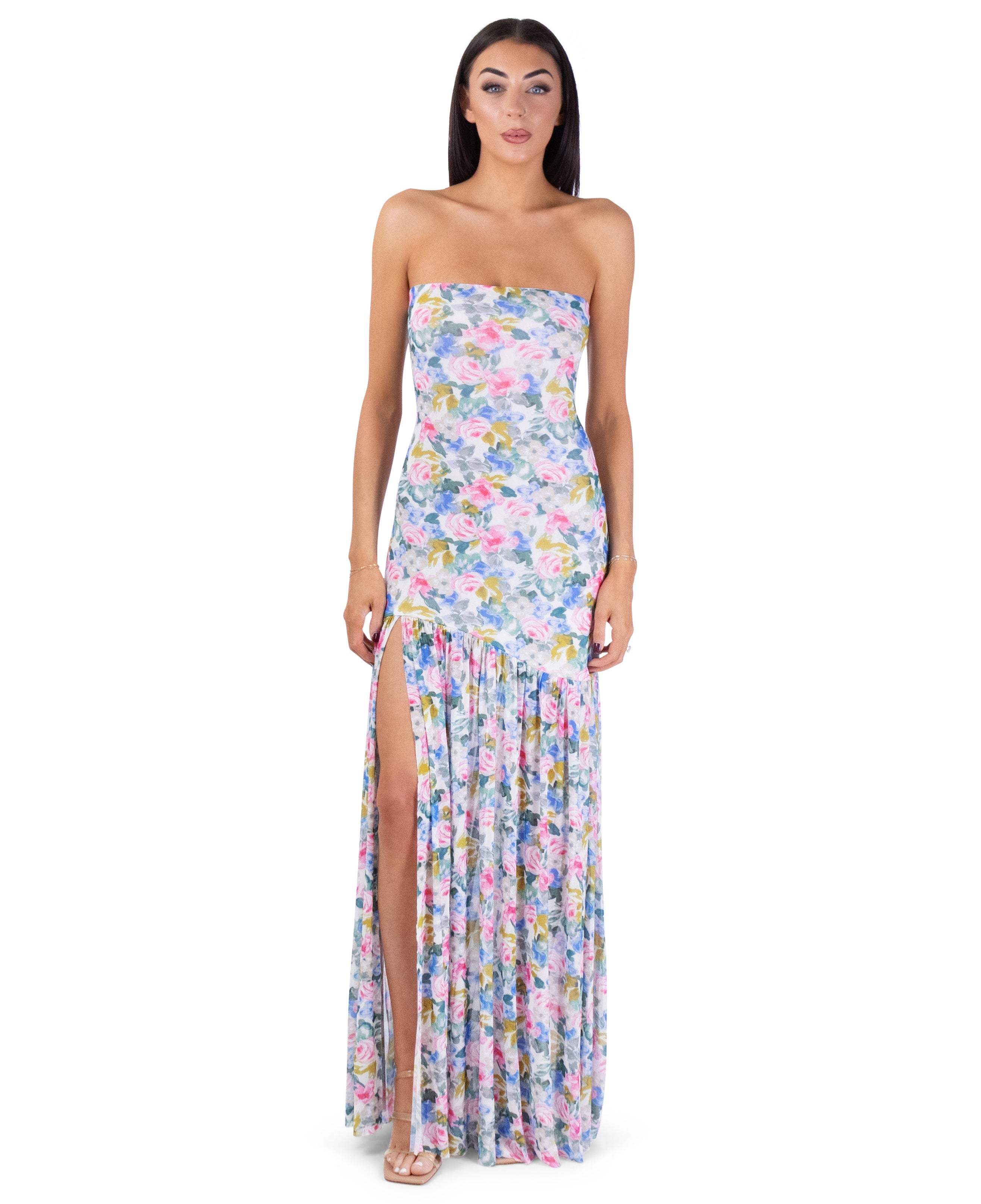 Asymmetrical floral maxi dress