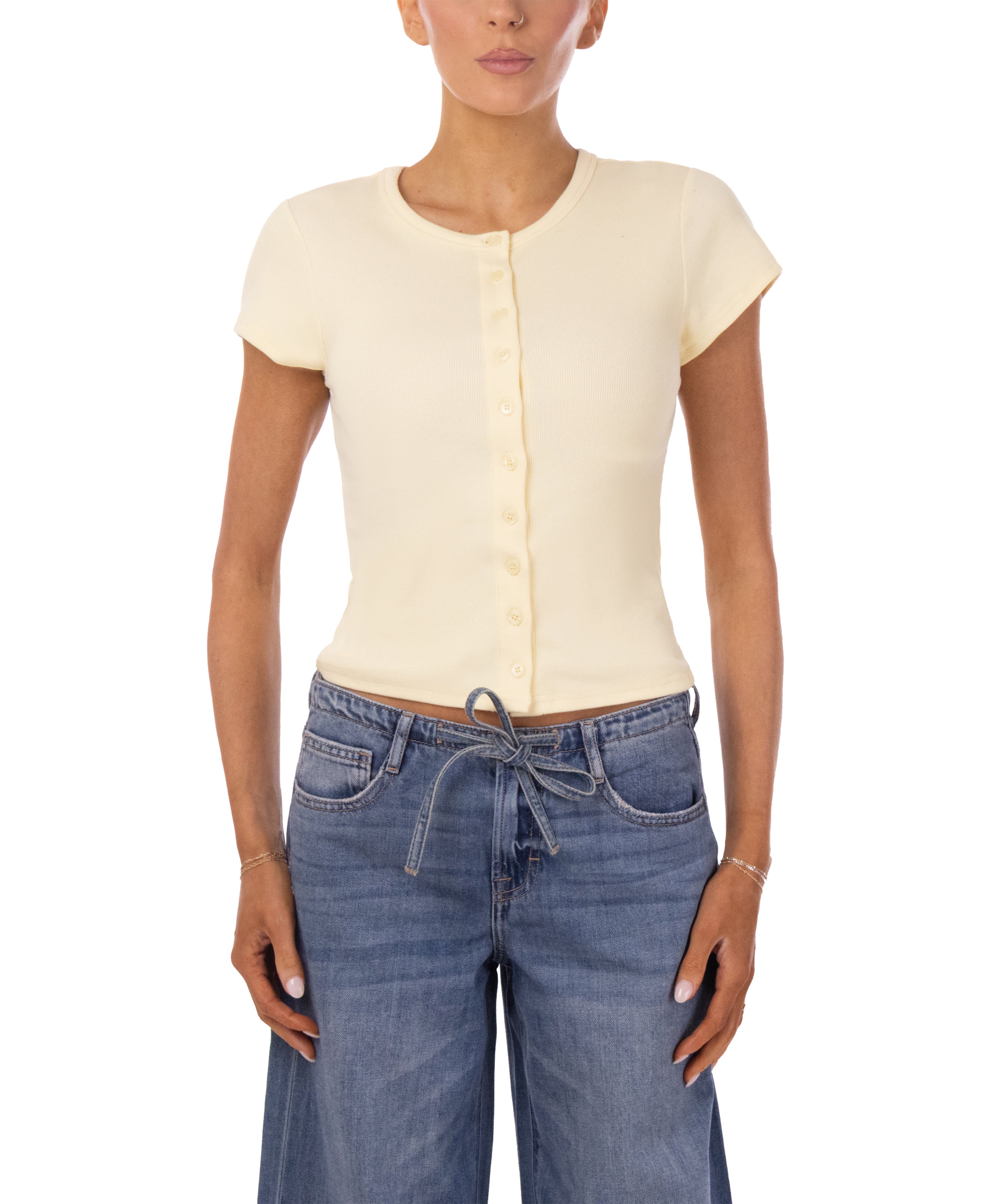 Ribbed button down knit top