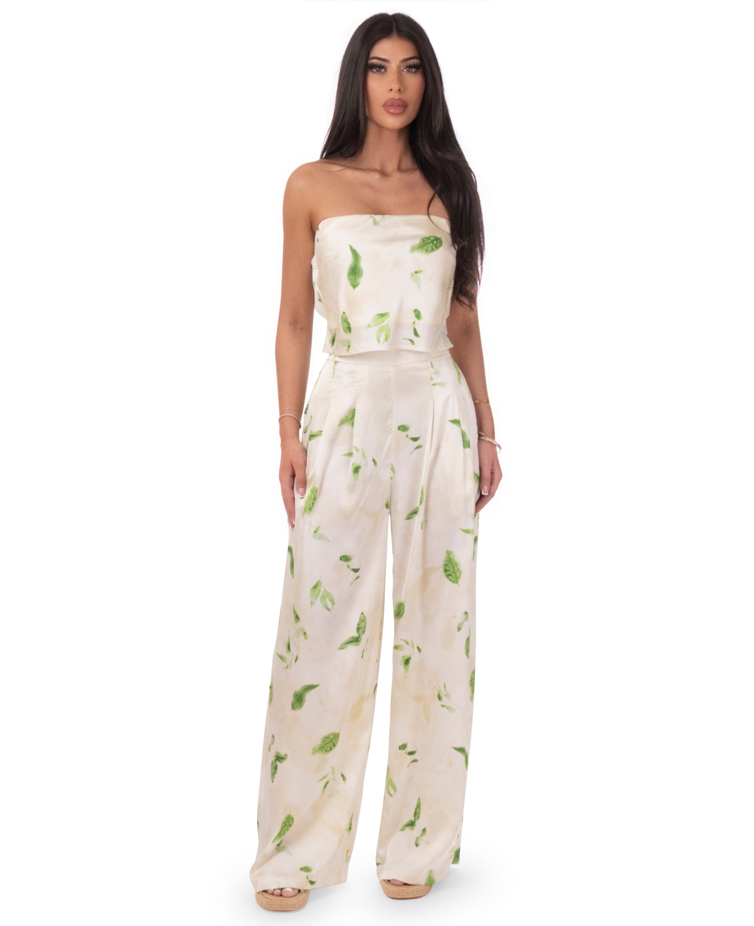Cream color with green leaf print