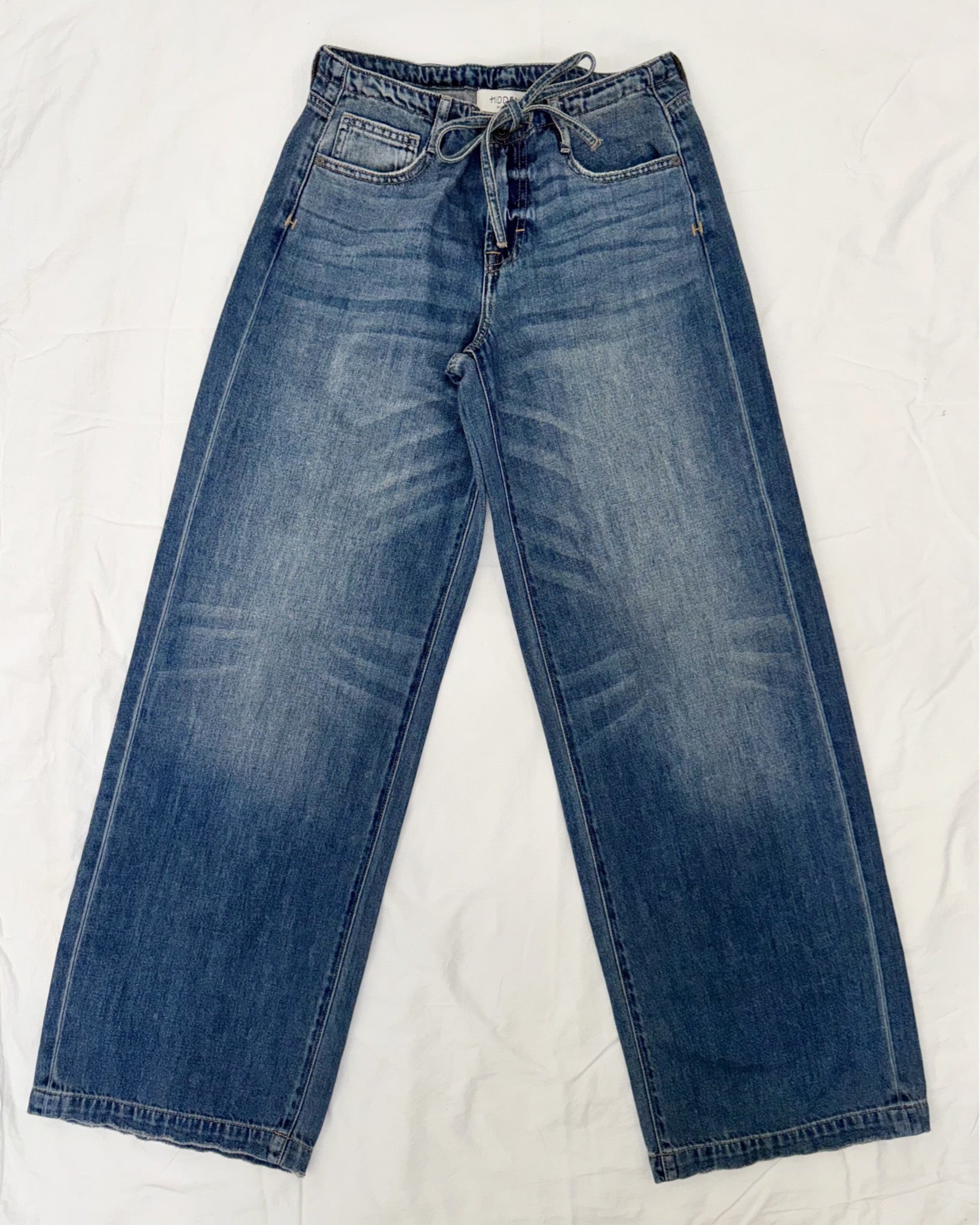 Drawstring, wide leg jeans