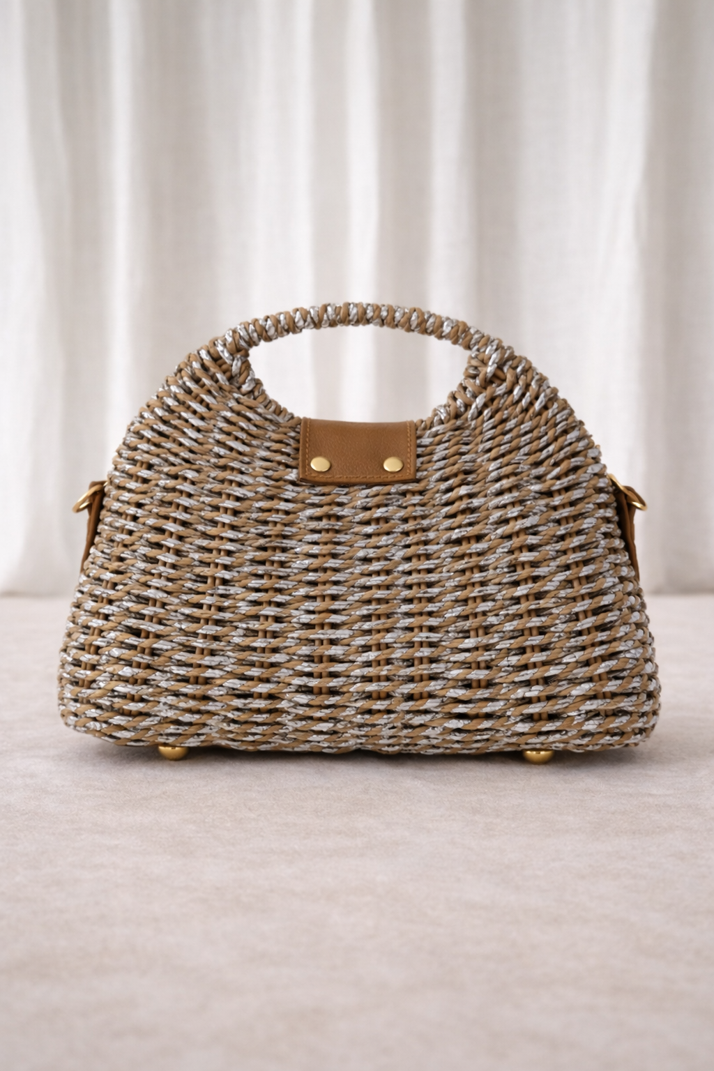 Metallic, raffia handbag