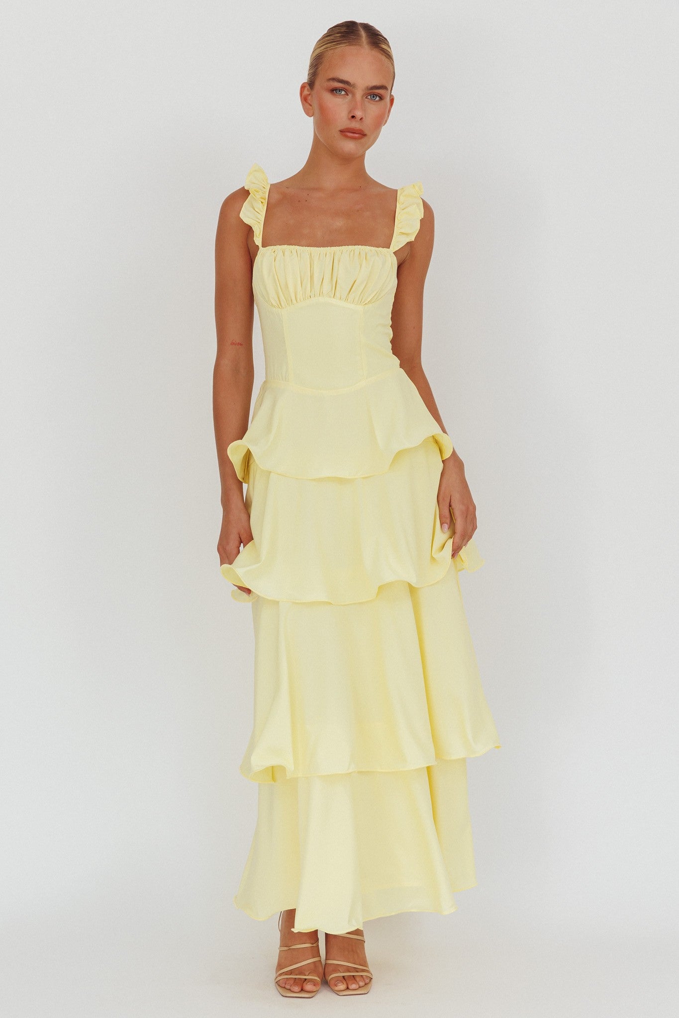 Ruffle accent tiered maxi dress